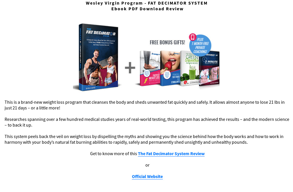 Wesley Virgin Program S Fat Decimator System Reviews
